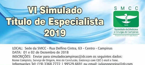 Acontecerá, nos próximos dias 1 e 2 de dezembro, o IV Simulado sobre Título de Especialista na Regional de Campinas. O simulado contará com a entrega de materiais (como edital, logística, disposição da prova, etc.) e orientações gerais.