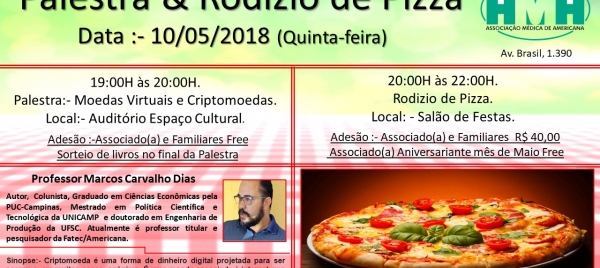 No próximo dia 10 de maio, às 19h, a Associação Paulista de Medicina – Americana realizará uma palestra sobre Moedas Virtuais e Criptomoedas, com o professor Marcos Carvalho Dias, em seu auditório.