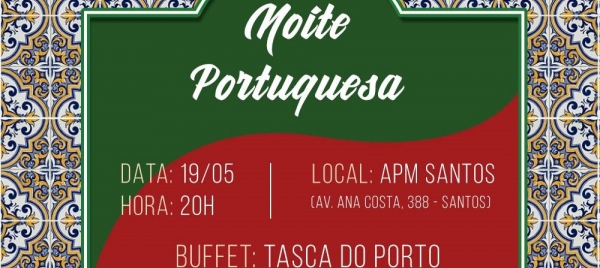 A Associação Paulista de Medicina – Santos realizará, em 19 de maio, um jantar português servido pelo Buffet Tasca do Porto. O evento também contará com a apresentação do grupo português Rancho Verde Gaio e do DJ Leonardo Lelli.