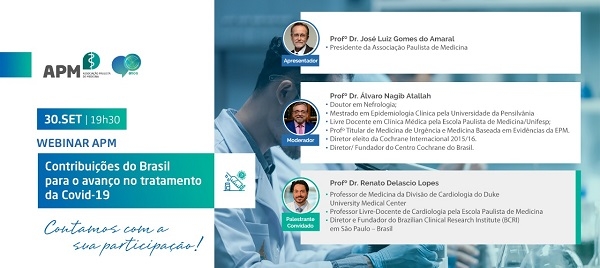 Em 30 de setembro, das 19h30 às 21h, especialistas em Medicina Baseada em Evidências se reúnem para analisar as contribuições do Brasil para o avanço mundial no tratamento da COVID-19.