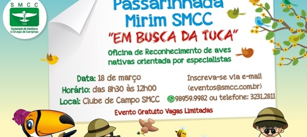 No dia 18 de março, chegará à Sociedade de Medicina e Cirurgia de Campinas – Regional da APM - mais um projeto inédito: o “Passarinhada Mirim – Em Busca de Tuca”.