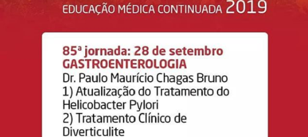Com palestras do especialista Paulo Maurício Chagas Bruno, o evento aborda os temas “Atualização do Tratamento do Helicobacter Pylori” e “Tratamento Clínico de Diverticulite”. Não perca!