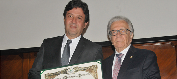 A primeira sessão do mês de agosto da Academia Nacional de Medicina, realizada na última quinta-feira (1), contou com a presença do ministro da Saúde, Luiz Henrique Mandetta, que foi nomeado vice-presidente honorário da instituição. O presidente da Associação Paulista de Medicina, José Luiz Gomes do Amaral, que também é diretor de Arquivo da Academia, esteve presente.