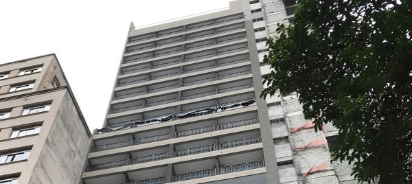 Na garagem do prédio, estão em andamento as pinturas do piso e da parede, a montagem dos elevadores de automóveis e sociais e a aplicação de textura na fachada.