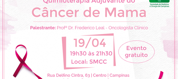 A Sociedade Medicina e Cirurgia de Campinas, Regional da APM, realiza nesta quinta, 19 de abril, evento sobre “Decisões Difíceis em Quimioterapia Adjuvante do Câncer de Mama”, com palestra de Frederico Leal, oncologista clínico.