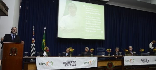 Em nome da esposa, Mirna, e dos filhos Daniel e Ana, o cunhado de Roberto Kikawa, o oftalmologista Marcelo Hatanaka, falou sobre o homenageado: “Lembro quando meu pai me chamou e falou ‘Marcelo, estou preocupado com a Mirna, porque o Beto está tendo umas ideias esquisitas. Ele quer montar um hospital’, isso em meio à nossa dificuldade em montar apenas um consultório. Aí eu falei ‘Deixa pai, o Beto é inquieto mesmo’. Depois, ele me chamou de novo e falou ‘Olha, acho que o negócio está complicando porque ele disse que vai enfiar esse hospital em cima de um caminhão e vai levar para as pessoas que não conseguem chegar nos hospitais’”.