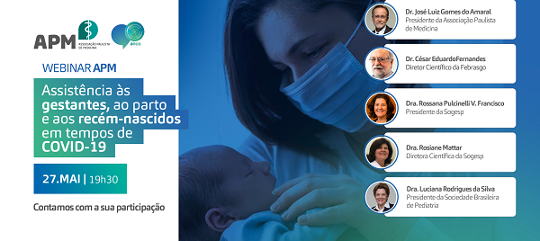Após o sucesso da primeira edição, a Associação Paulista de Medicina volta a realizar outro webinar nesta quarta-feira, 27 de maio, a partir das 19h30, em seu canal no YouTube. Desta vez, o tema será “Assistência às gestantes, ao parto e aos recém-nascidos em tempos de Covid-19”.