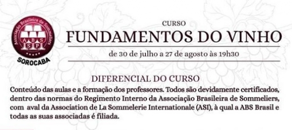 15/07/2018 - Sorocaba sedia Curso de Fundamentos do Vinho a partir de 30 de julho