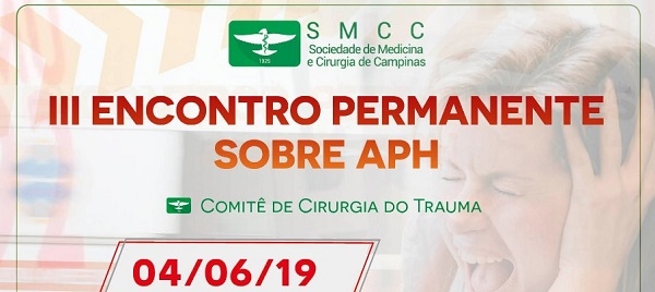 Seguindo o cronograma de atividades do Comitê de Cirurgia de Trauma da Sociedade de Medicina e Cirurgia de Campinas (SMCC), Regional da APM, no dia 4 de junho acontece o III Encontro Permanente sobre APH.